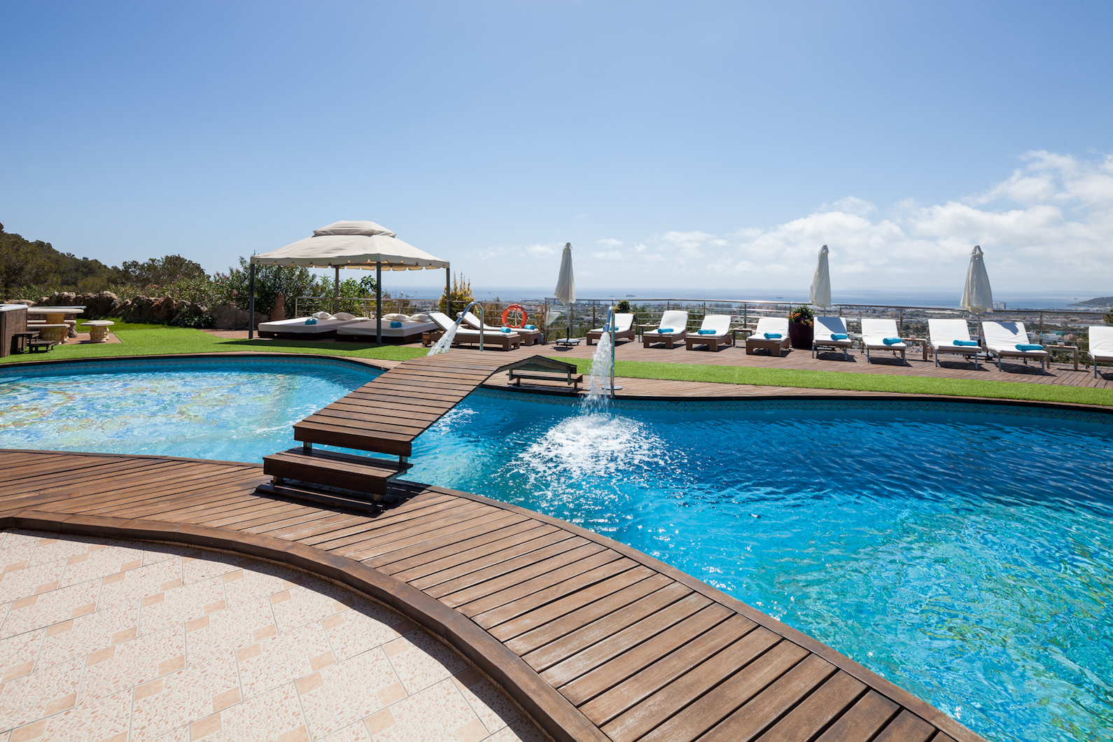 This is one of Ibiza best villas, surrounded by a natural environment ideal for large groups with a perfect location to enjoy, just 10 minutes to Ses Salines beach and also Playa d’En Bossa beach. It is located on a hill in the area of Sa Carroca, over a plot of 90,000 sqm, fully fenced around the house, providing security and tranquility.Ā This private property in Ibiza, offers a large space area to gather comfortably, lounge with bar, dining room with wine cellar, covered terrace with a possible of glass enclosure, so you enjoy watching the beautiful sea and mountain, with the mainframe the natural park of Ses Salines, Formentera island and the old city of Dalt Vila.Ā ThisĀ Ibiza countryside style villa offers fountains and waterfalls distributed by the whole property for a freshness and relaxation.Ā The living room is notable for its breadth and elegance with also has aside, a large dining room. All rooms are distributed in 2 levels, they are double, with bathrooms en-suite. The outside area offers spectacular views of the pool and sunbathing area; next is the Jacuzzi. There is also a barbecue area in the cozy and spacious covered terrace where you can stare the beautiful sunset.