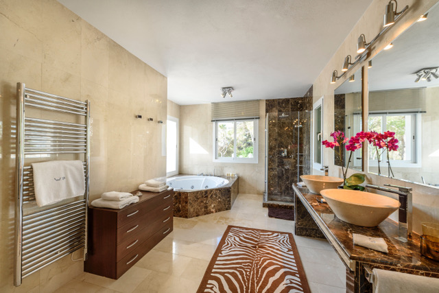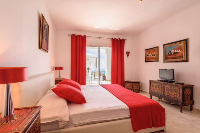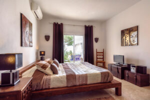 – 1 master bedroom with 1 bed size 160cm, dressing room, private bathroom with shower and Jacuzzi tub and terrace